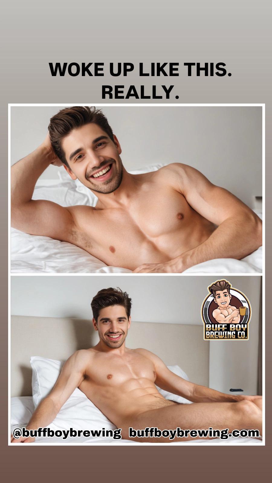 I slept in. Not even gonna lie. I'm not a morning person. Here's my apology pic. Am I forgiven? Enjoy it quickly because I'm thinking our internal censors will be like, "Whoa, whoa, whoa. Nooooooo." Drink in the Buff heat while you can.